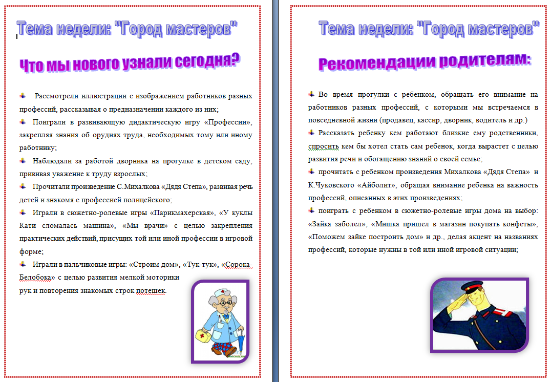 Тема недели мой город вторая младшая группа