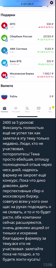 Ну и как же без отзывов людей, которые опробовали на себе всю силу инвестиций: