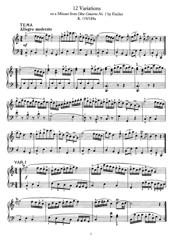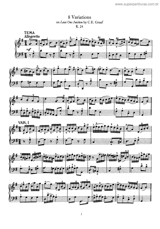 Тема вариации моцарт ноты