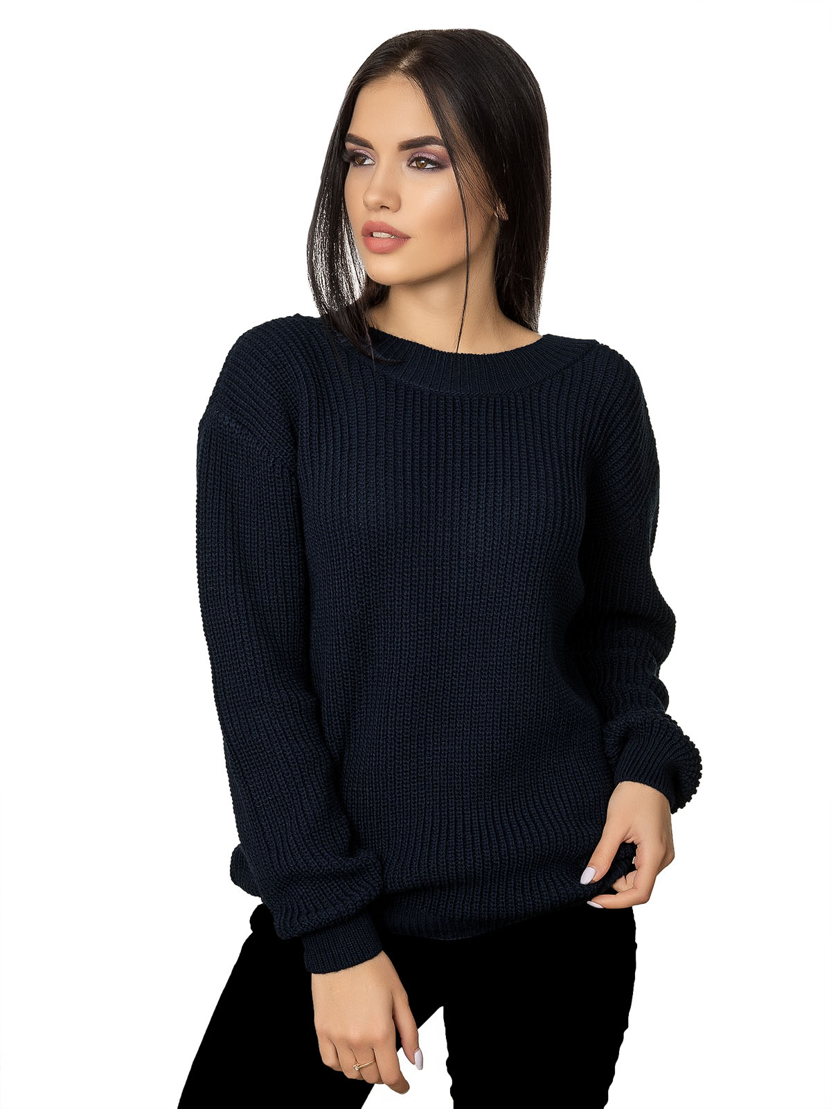 Темно синий свитер женский