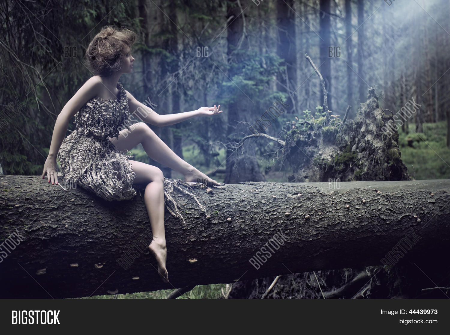 Темноволосая нимфа на природе.