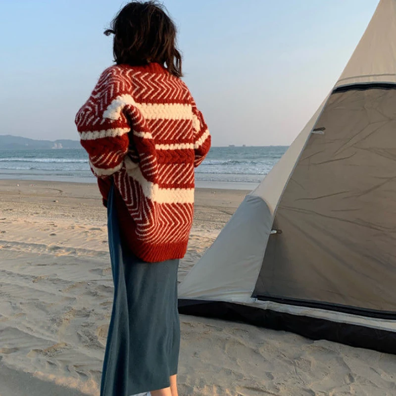 «Temperament All-match New Year Red Striped Knitted Sweater Autumn 2021 New Loose Lazy Collar Cardigan Long-sleeved Jacket Women» по лучшей цене на рынке! Всего за 13$ (1235рублей)