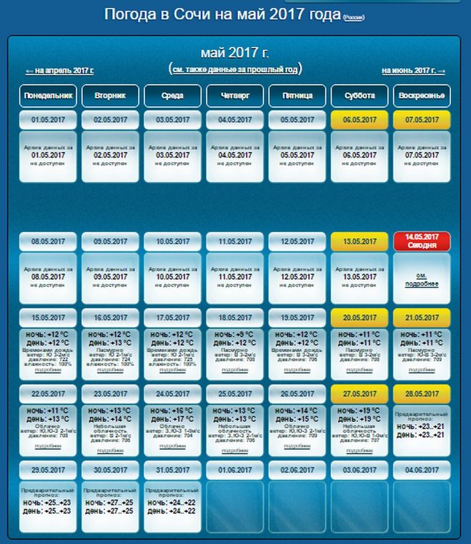 Температура сочи май 2025