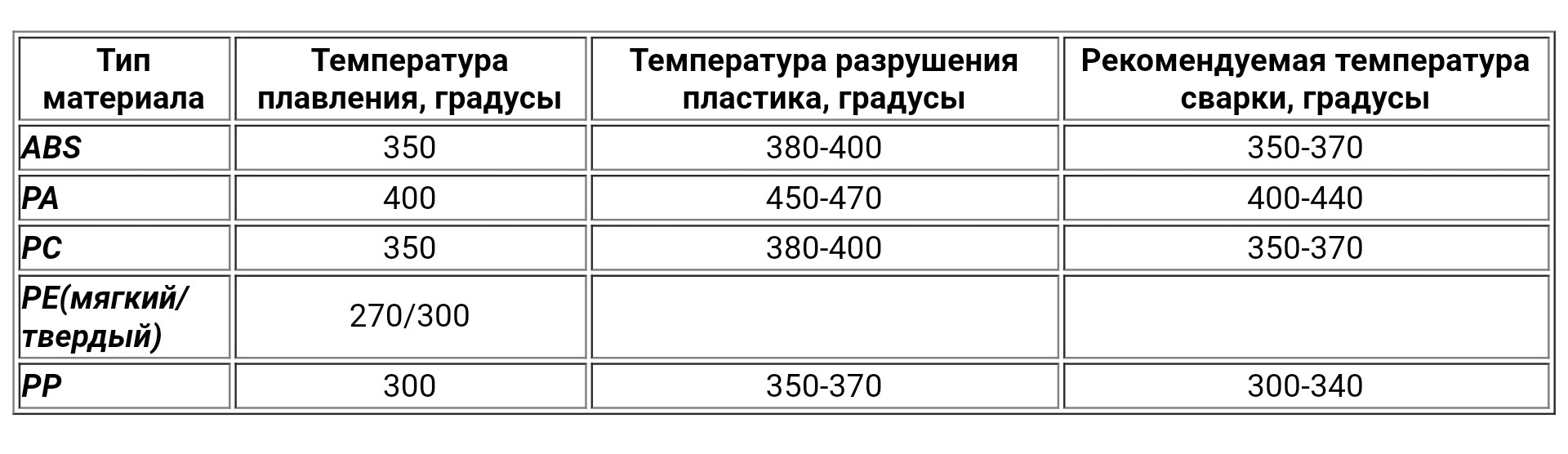 Температура сварки пластиковых