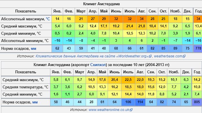 Температура в амстердаме