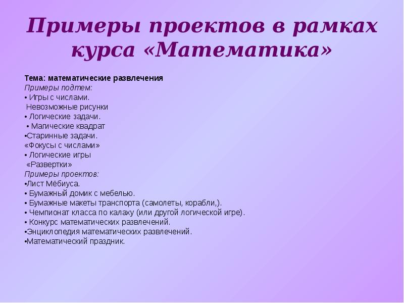 Темы проектов по предметам 5 класс