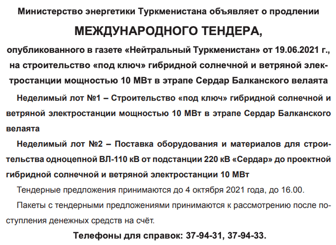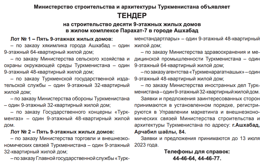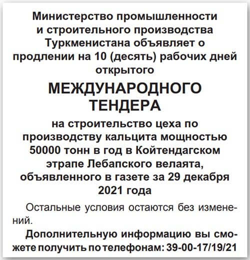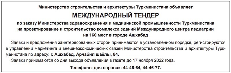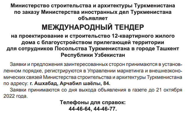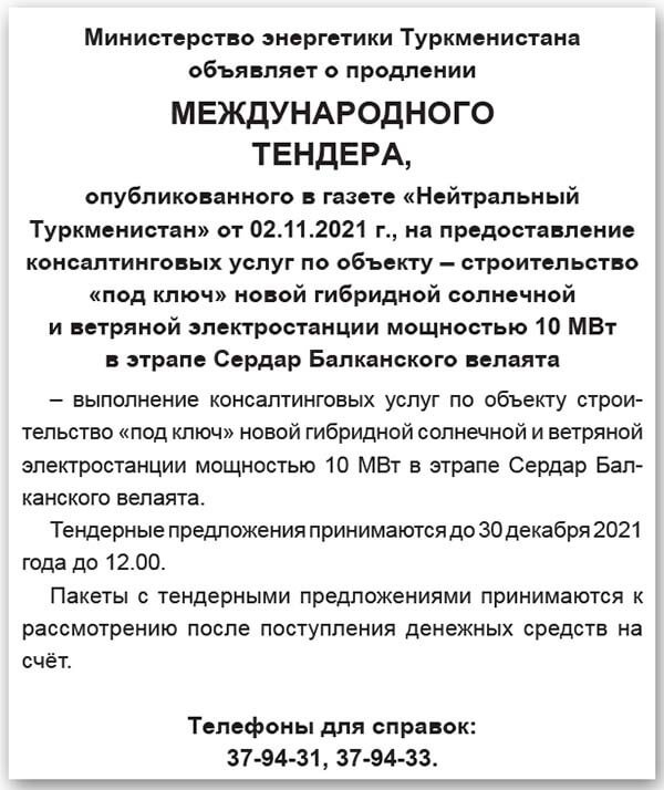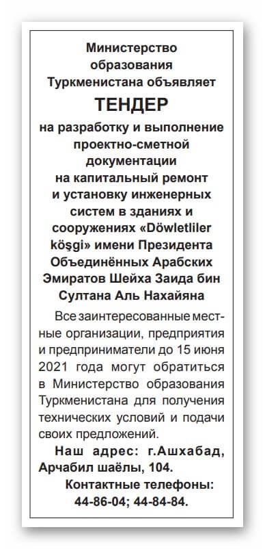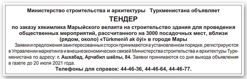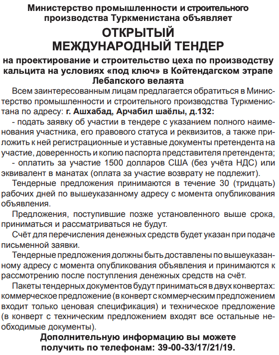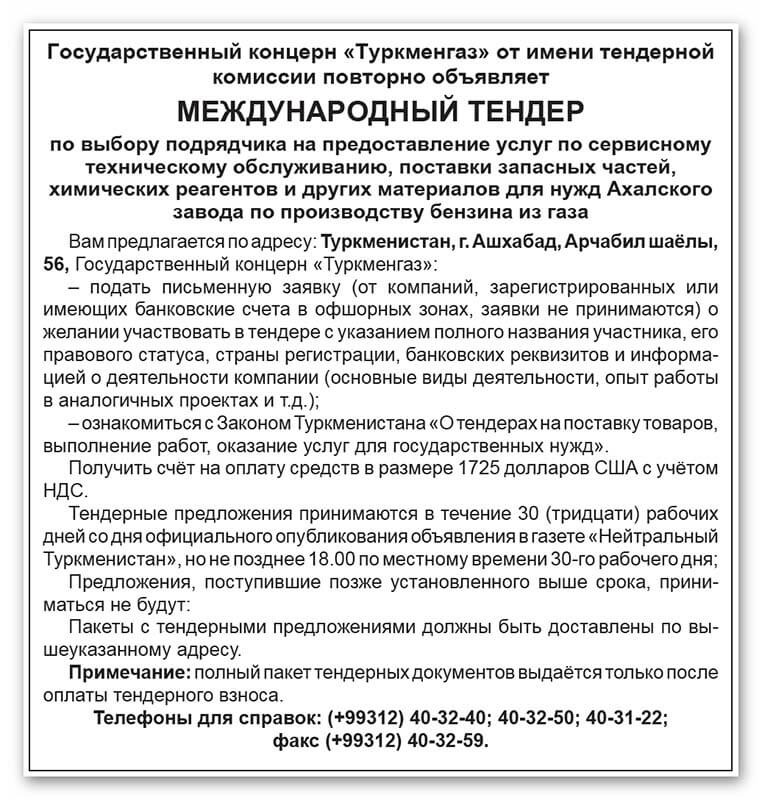 Тендеры туркменистана