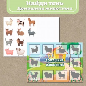 Тени животных в картинках для распечатки Файл для распечатки содержит 3 больших картинки, изображающих среду обитания животных: море — для морских обитателей, лес — для диких животных, ферма — для домашних . И 18 маленьких карточек с изображением животных . Играть можно по принципу лото, закрывая цветной карточкой соответствующую тень .