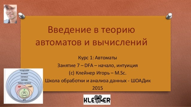 Урок 12 . Основы теории автоматов . Математическая логика . . .