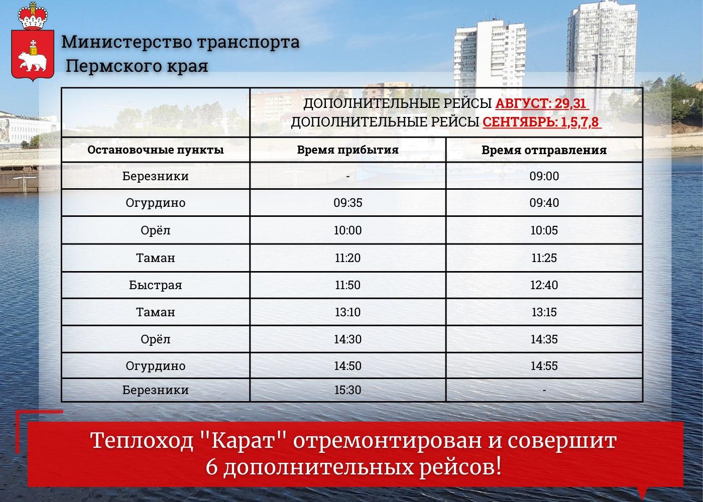 Теплоход березники расписание