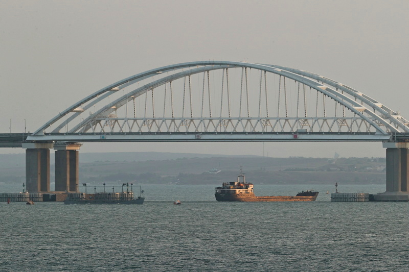 Теплоход на крымском мосту