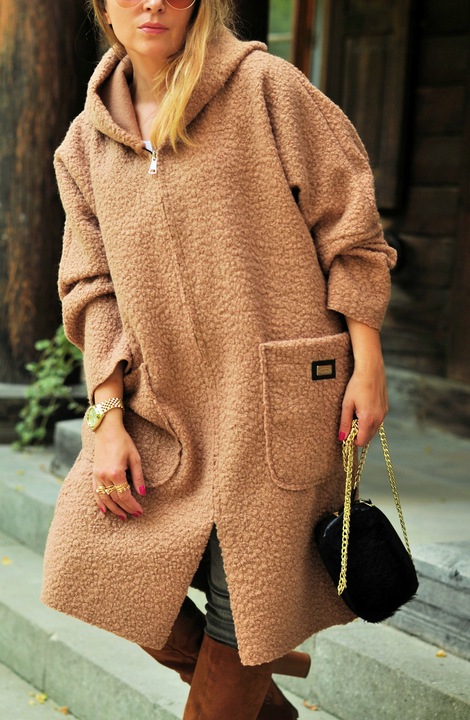 Бежевое Пальто С Худи Женские