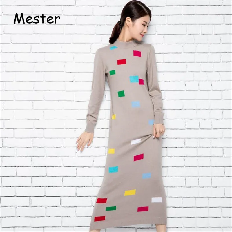 Осень-зима новые женские платье с высоким воротом Модная тонкая теплая плотная длинная теплая куртка с длинными рукавами кашемировый шерст...