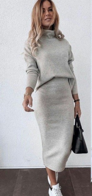 Костюмы из ангоры выполнены в спортивном стиле, но носить их можно и каждый день. Они смогут согреть вас даже в самый холодный вечер. Несмотря на то, что ткань тонкая, шерсть не позволяет теплу улетучиваться. Костюмы из ангоры включают в себя брюки и свитшот. Есть и юбочные варианты. Они красиво обтягивают фигуру и делают образ более женственным.