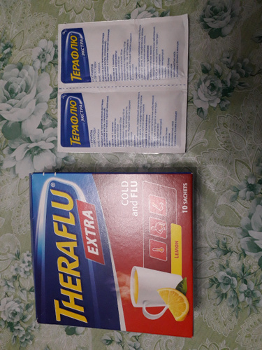 ТераФлю від грипу та застуди зі смаком лимона, порошок для орального розчину, №10, Р .П . № ua/5529/01/01 від 08 .07 .2021 № 1389 . Терафлю Екстра зі смаком лимона, порошок для орального розчину, №10, №1 .