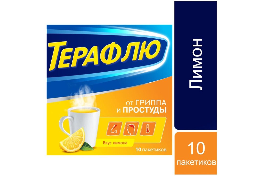 Терафлю от гриппа и простуды, порошок, со вкусом лимона, 10 пакетиков от производителя по приятной цене . На asna .ru найдутся все лекарства!