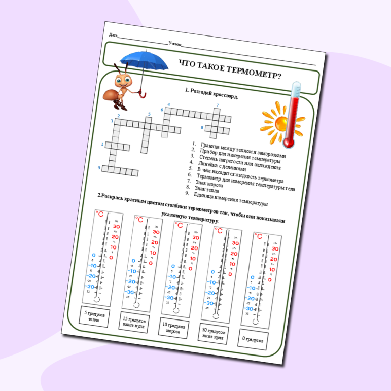 Термометр 2 класс рабочий лист