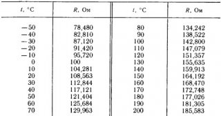 Термометр сопротивления таблица