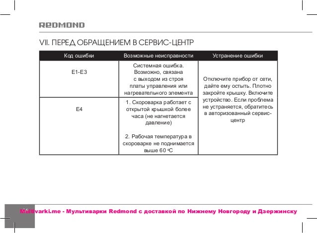 Мультиварка Редмонд - ошибка Е1: как устранить и что . . .
