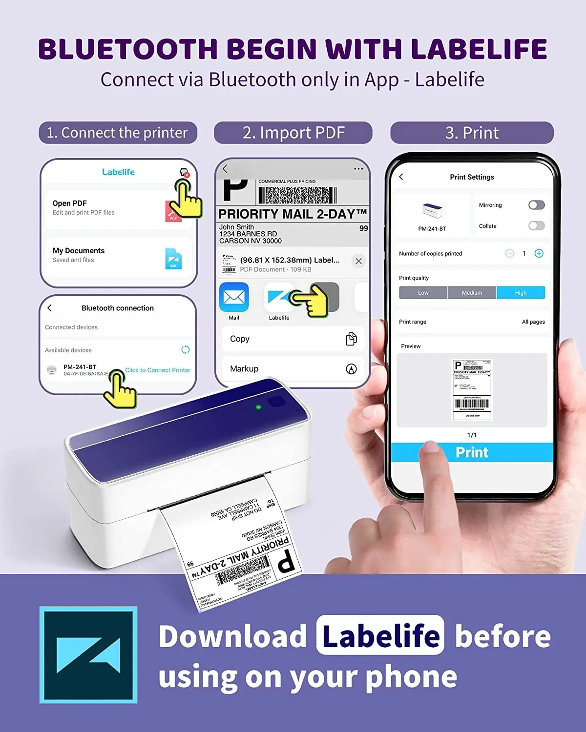 EVlfIPbkoHere you can buy Термопринтер для этикеток, 150 мм/с, 203DPI, Поддержка iOS, Android, Windows with free delivery to your post office.