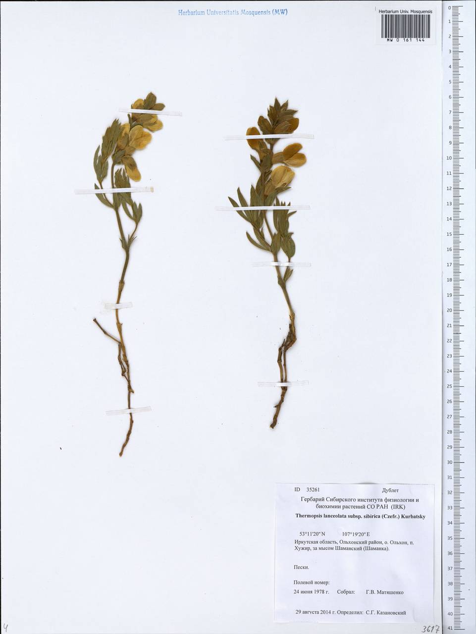 СОКМ КП-6520/5 П-674 Гербарий . Термопсис люпиновый . Thermopsis lupinoides . Официальный сайт Сахалинского областного краеведческого музея . Новости, мероприятия, режим работы, экспонаты, инофрмация о музее .