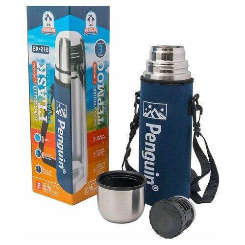 İki tıpalı ve kalın, ısı yalıtımlı neopren kaplamalı paslanmaz çelik termos. Birinci stoper kördür, stoper sayesinde ısı kaybını azaltarak ilave 1-2 derece elde edebilirsiniz, ikinci stoperde ise stoperi sökmeden termostan içecek dökmenizi sağlayan bir düğme bulunmaktadır. Duruma göre herhangi bir fişi kullanabilirsiniz. 0,75 litrelik termos hacmi, ısının uzun süreli tutulmasını sağlayacaktır. 24 saat sonra sıcaklık en az 50-55 C'dir, bu piyasadaki en yüksek göstergelerden biridir. Bu tür yüksek sıcaklık verileri, derin bir vakum oluşturmak ve şişenin iç kısmına özel bir yansıtıcı Cu-Ni kaplama uygulamak için modern teknolojiler tarafından sağlanmaktadır. Termos birinci sınıf paslanmaz çelikten yapılmıştır. Tüm plastik parçalar, geri dönüşüm geçmişi olmayan işlenmemiş plastikten yapılmıştır. Bütün bunlar ürünün yüksek düzeyde çevre dostu olmasını sağlar. TM Penguin'in ürünlerinin yüksek düzeyde çevre güvenliği nedeniyle birçok özel ödüle sahip olması boşuna değil. Termos, iş için bir sırt çantasına veya küçük bir çantaya koymanıza olanak tanıyan kullanışlı bir boyuta sahiptir. Termoslar ısıyı ve soğuğu eşit derecede iyi korur.