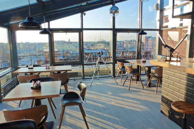 Фото: spb .restoran .ru . . . В тёплое время года здесь работает панорамная терраса на крыше . Если захотите подробнее рассмотреть окрестности с высоты, попросите у официанта подзорную трубу . . . .