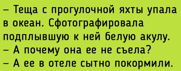 А вот с тем, что тёща постоянно ездит с нами в отпуск — мириться уже намного труднее . Но это еще не самая большая беда . Две недели назад тёща заявила нам о том, что хочет переехать к нам жить! Видите ли, ей у нас очень комфортно и хорошо . Когда я прихожу домой, она . . .