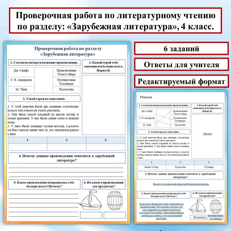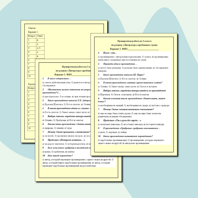 Тест 2 класс зарубежные писатели