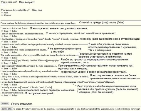 Это одна из версий теста на сексуальную зависимость, разработанного американским специалистом в данной области, психологом Патриком Карнсом (Patrick Carnes) . Единственный вопрос, на который дает ответ этот тест . . .