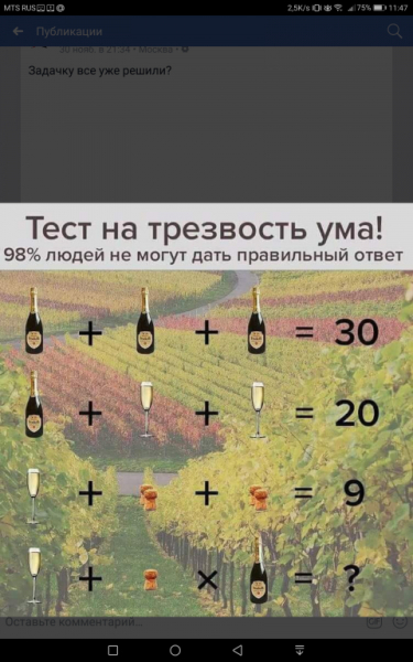 Тест на трезвость ума картинка ответ шампанское . . .