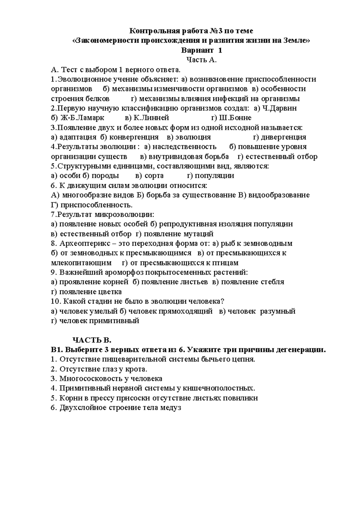 Тест биология учение об эволюции