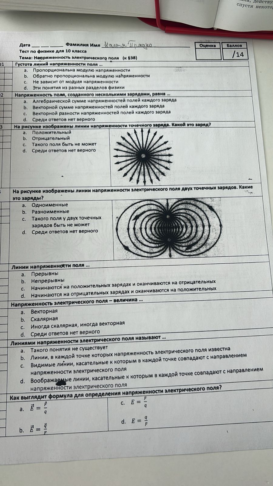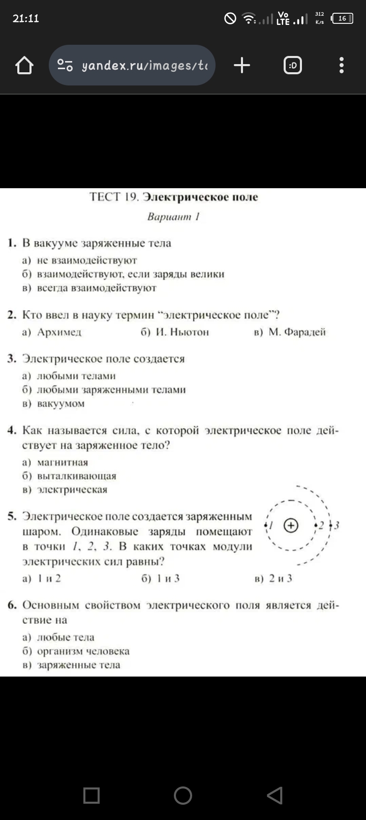 Тест электростатическое поле