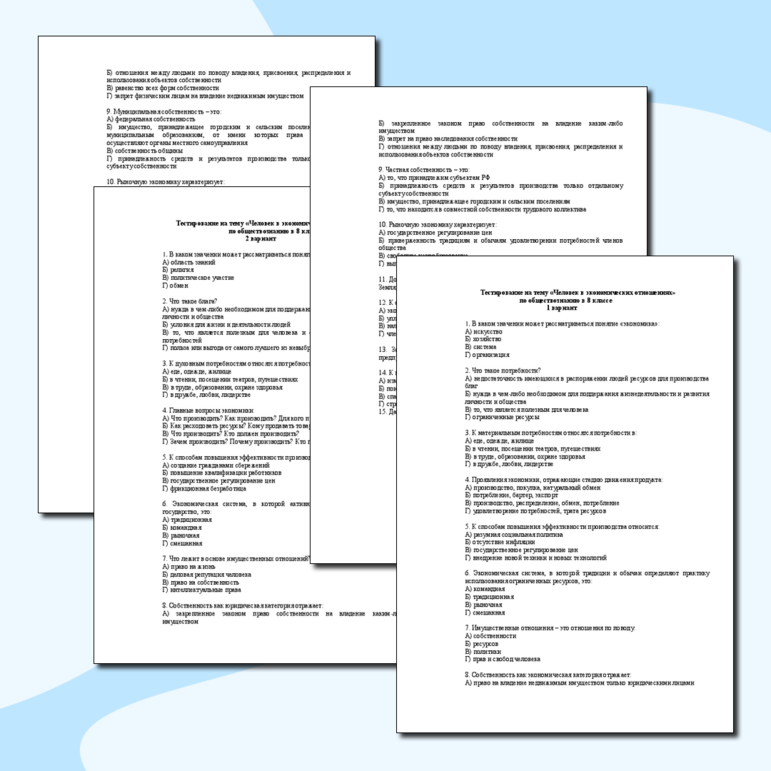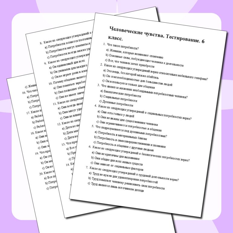 Тест к теме человек