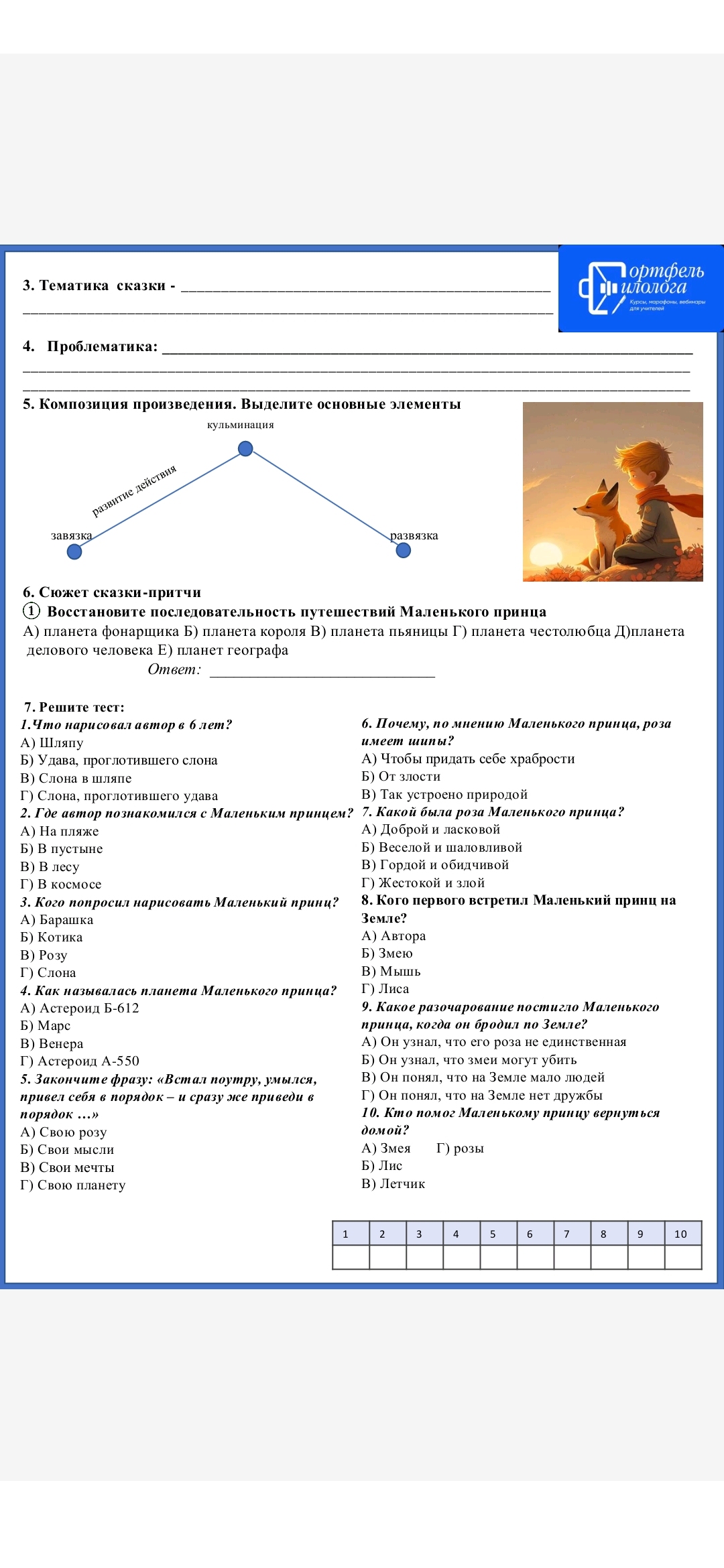 Тест маленький принц 8 класс