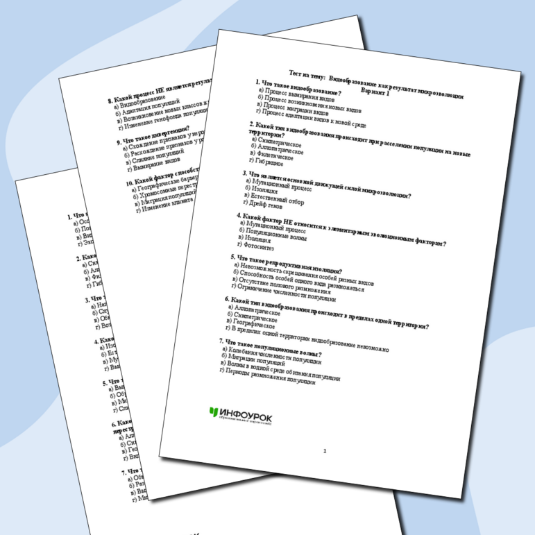 Тест микроэволюция 9 класс биология