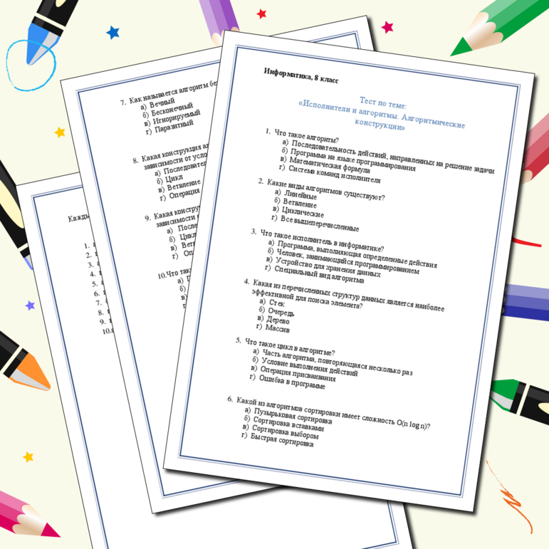 Тест на алгоритмы 6 класс