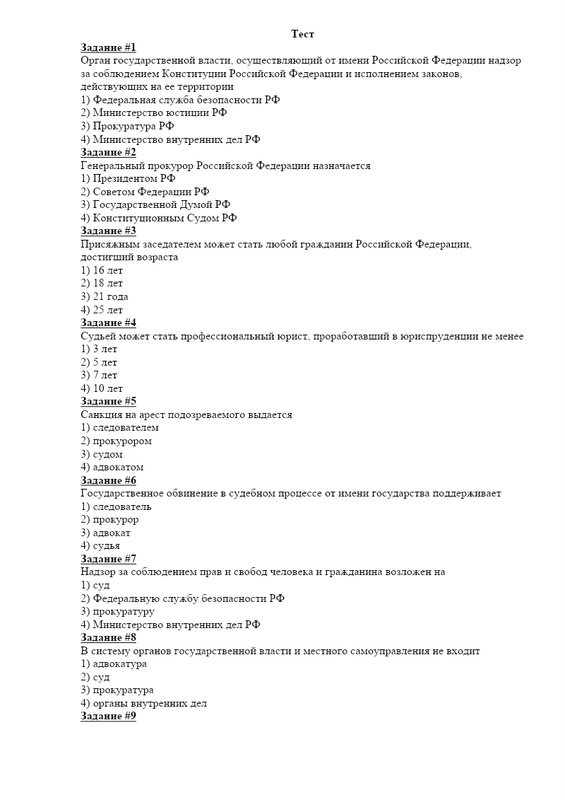 Тест на правоохранительная деятельность