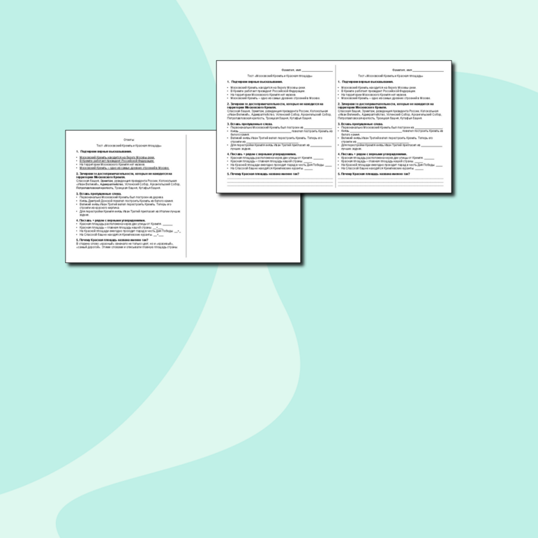 Тест окр мир 2 класс московский кремль