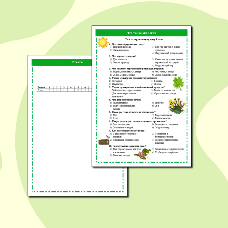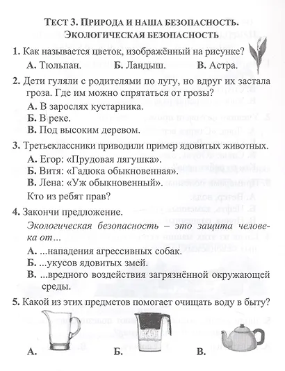 Тест окружающей среды 3 класс