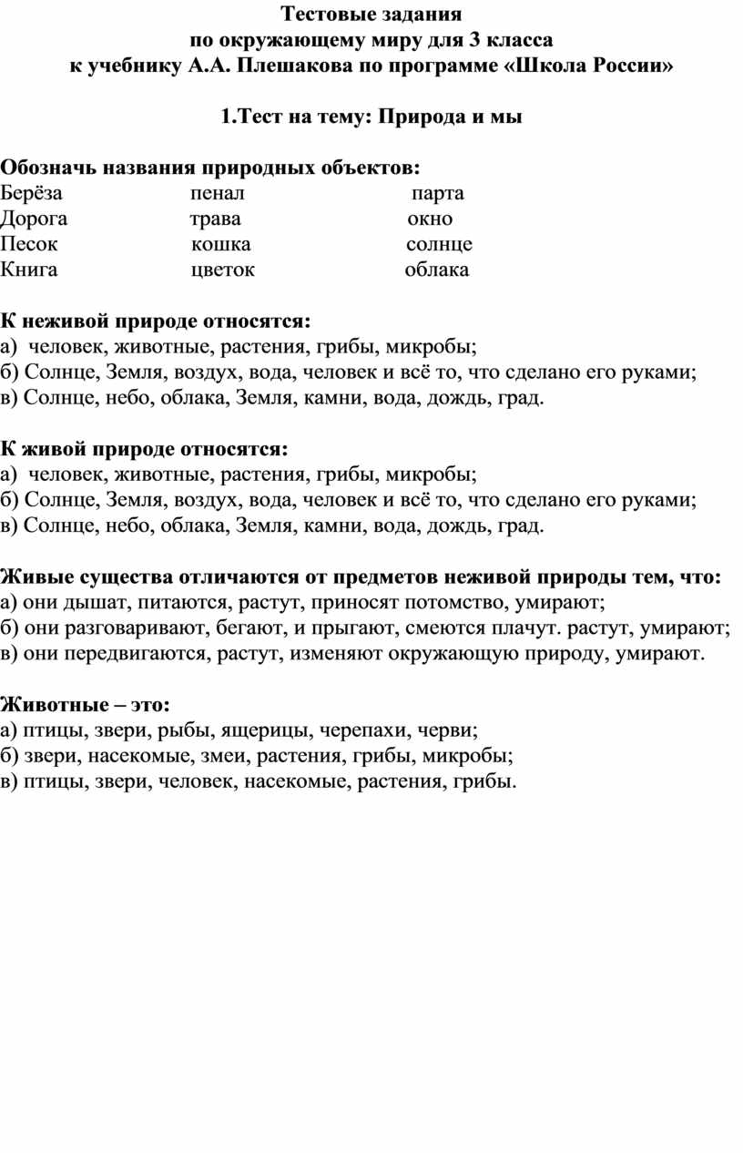 Тест окружающей среды 3 класс 66 фотографий