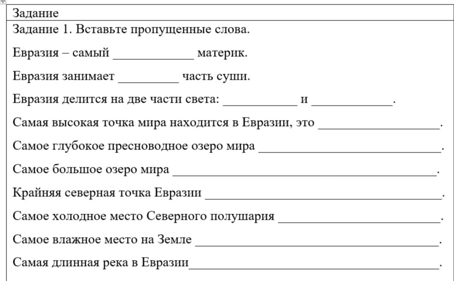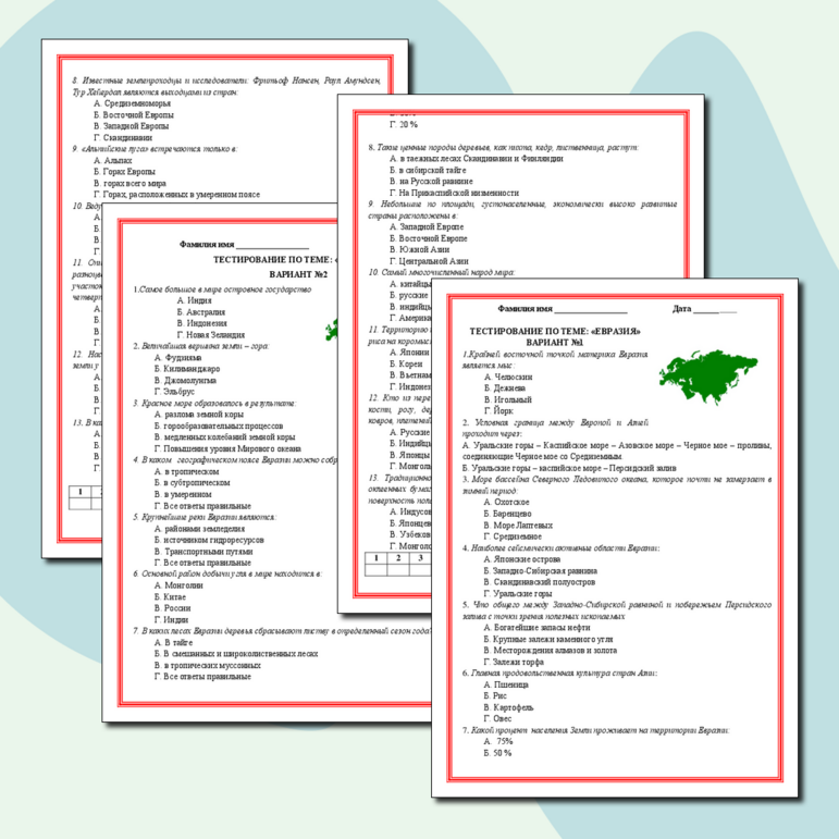 Тест окружающий мир 2 класс евразия