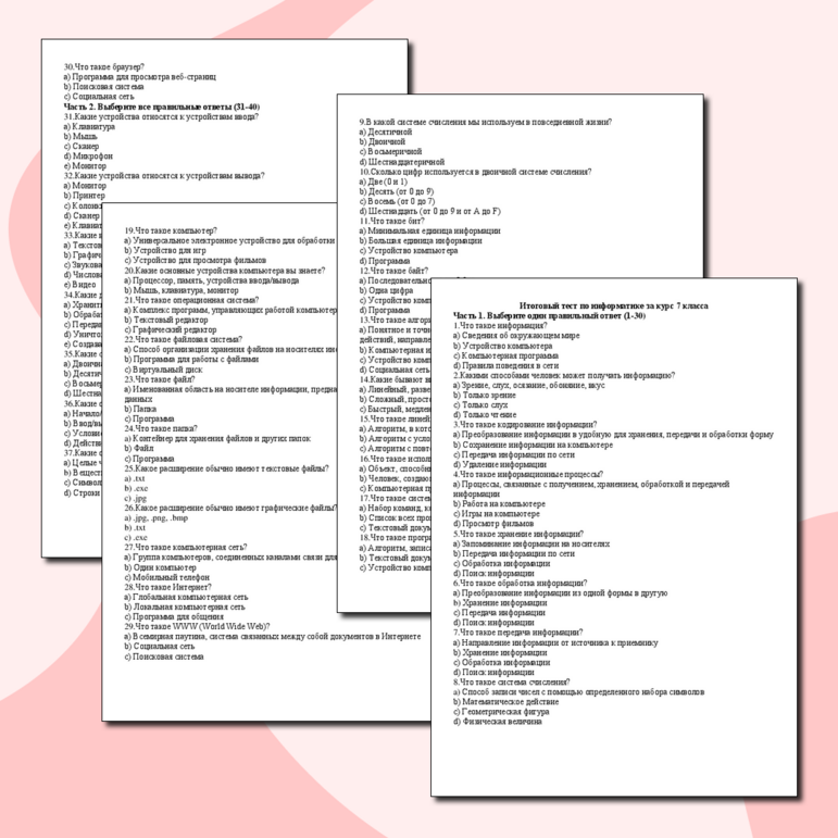 Тест по информатике вопросы и ответы