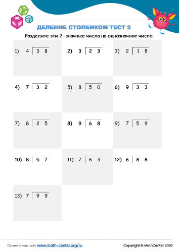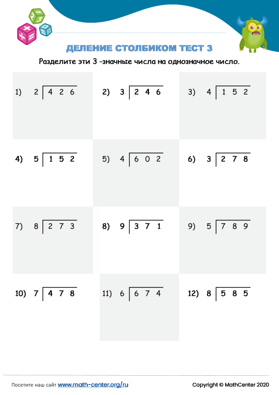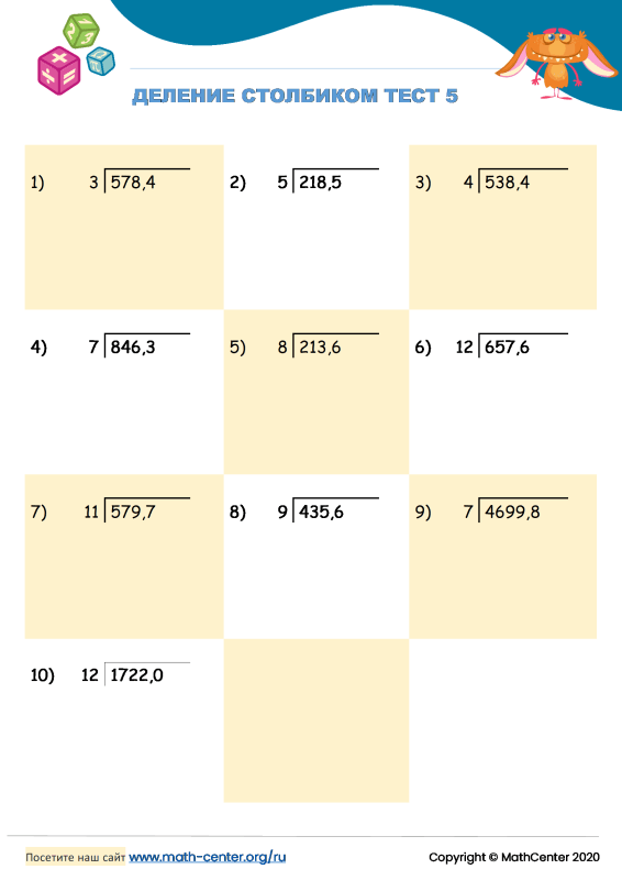 Тест по математике столбиком
