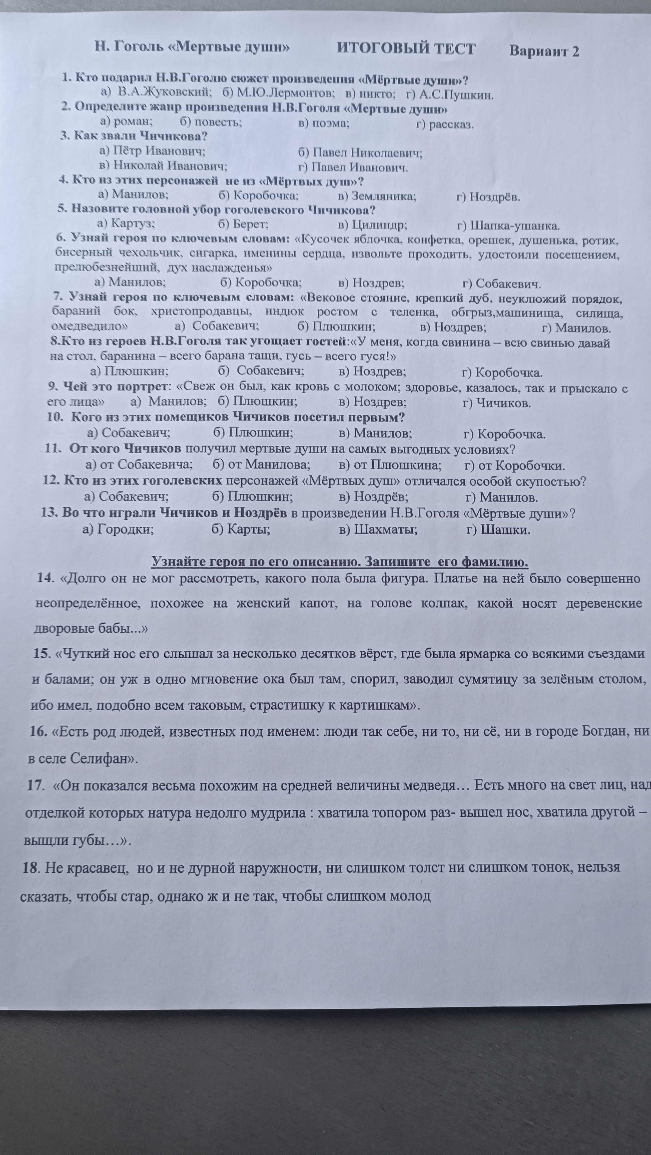 Тест по мертвым душам 2 3 глава 83 фото