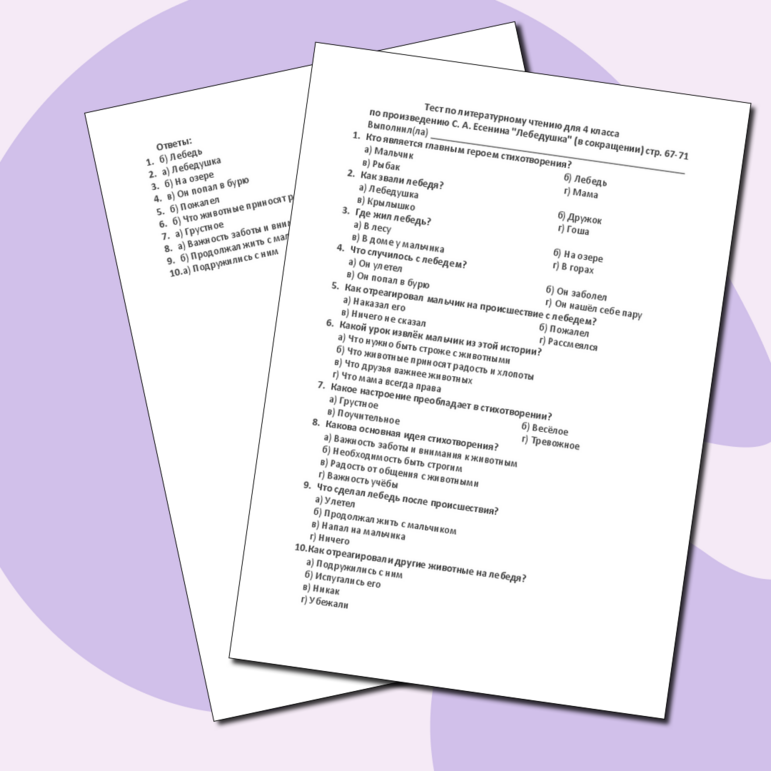 Тест по произведению лебедушка 102 фотографий