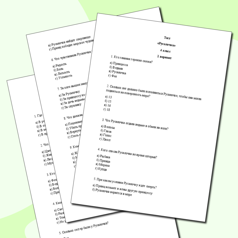 Тест по теме русалочка 4 класс
