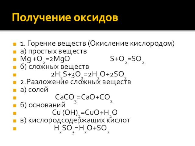 Тест получение оксидов