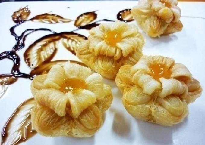 Вырежьте ножом из этого пласта теста листья . Тупой стороной ножа продавите на листьях "прожилки" . Слегка смажьте края теста водой . Прижмите листья к краю теста .