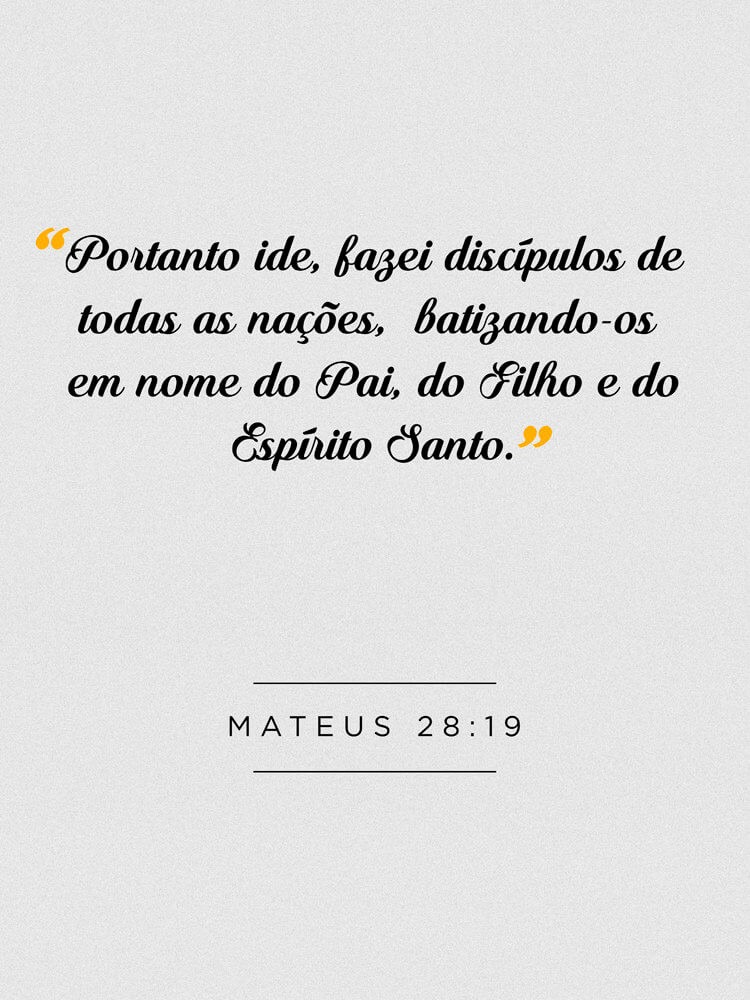 “Portanto, vão e façam discípulos em todas as nações. Batizem-nos em nome do Pai, do Filho e do Espírito Santo.